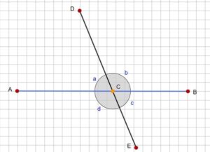 Míniú: Os rud é gur line díreach é AB. Ciallaíonn sé seo go bhfuil ∠a+∠b = 180°. Os rud é gur ∠a=23° mar sin ∠b=180°-23° = 157°